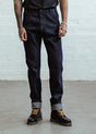 The Garage Jean are workwear inspired jeans, crafted from 14oz dark indigo denim with a Rinse Wash. Designed for comfort, they feature a relaxed fit and a zip fly. The jeans are detailed with angled leg seams, red stitch buttonholes, and bartacks for added strength. Gunmetal studs and rivets provide a rugged touch, while the ‘Chet Rock’ patch and flash embroidery on the back pockets add stylish accents. A check flag on the side of the back pocket completes the distinctive design.
