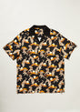 The Crouching Tigers Shirt is an oversized short sleeve shirt, featuring a japanese tigers print set against a bold black background. It has an open neck collar and a button-front closure for a relaxed, casual look. The shirt is finished with our signature Chet Rock Flag label on the left side seam.